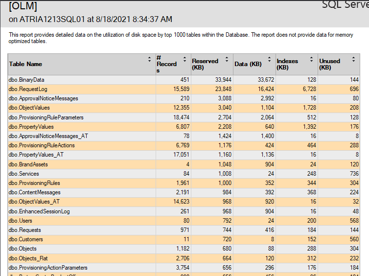 Objective Provisioning tasks in Atria are logged to the SQL database. Over time this can begin to have an impact on the performance of the platform showing the below symptoms: Extremely slow performance on the Atria web portal. Timeout errors while ...