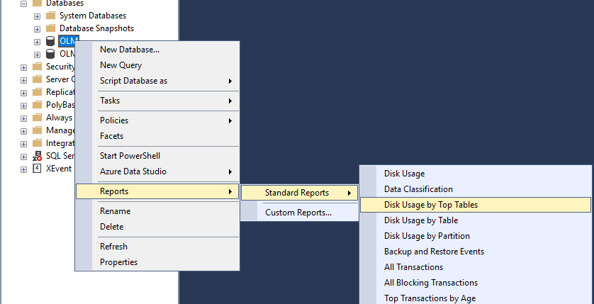 - View the Disk Usage by Top Tables report.